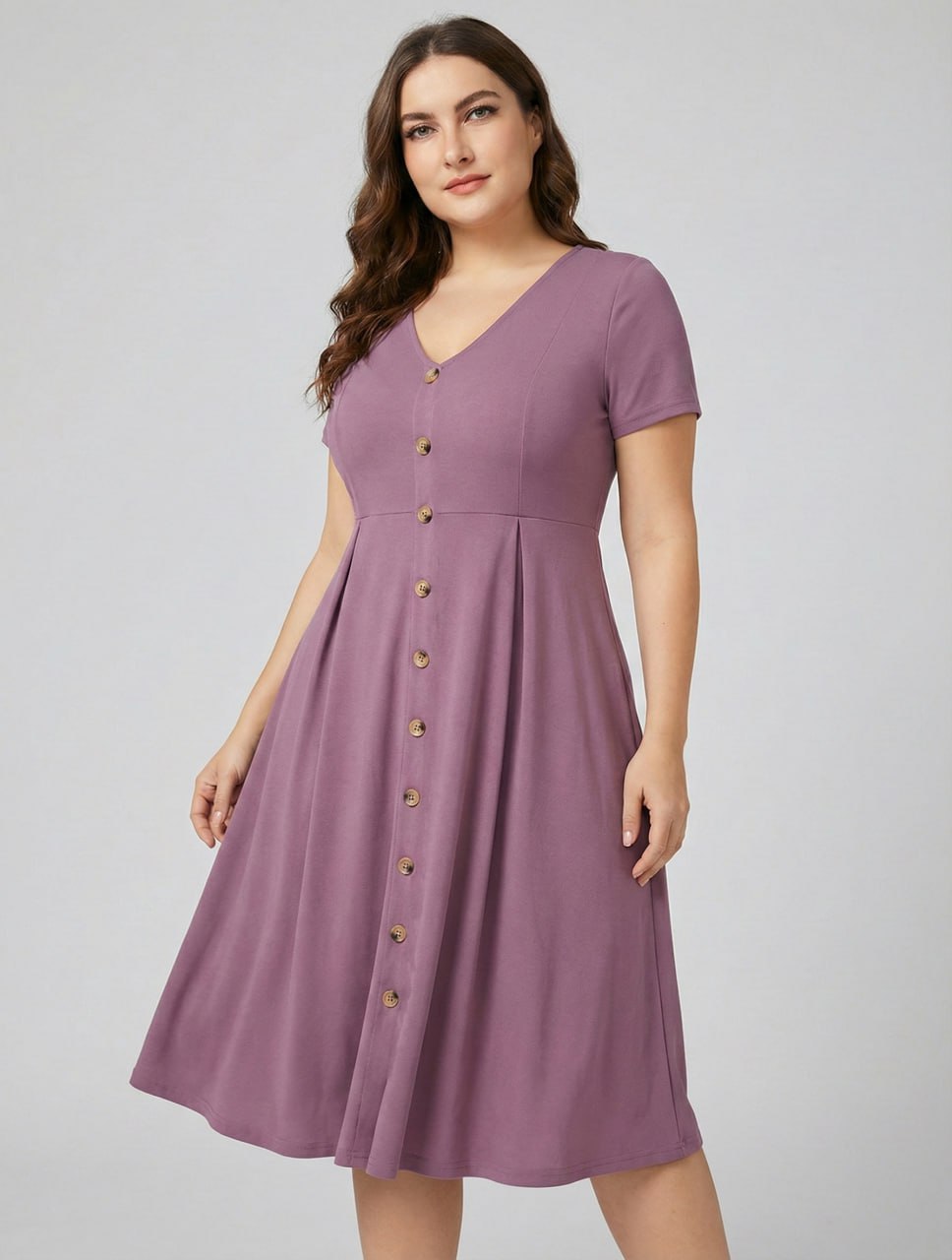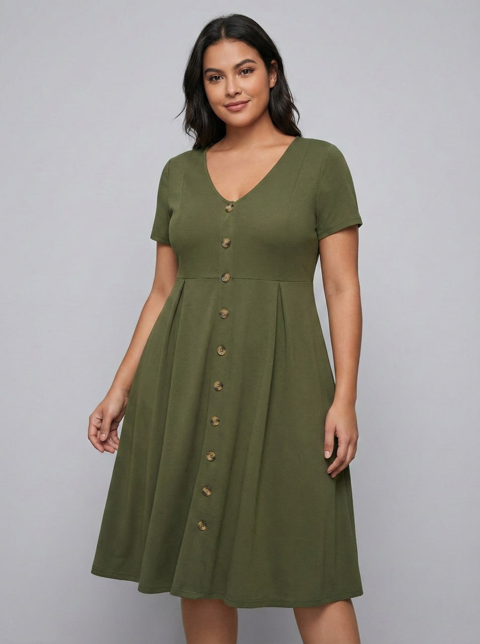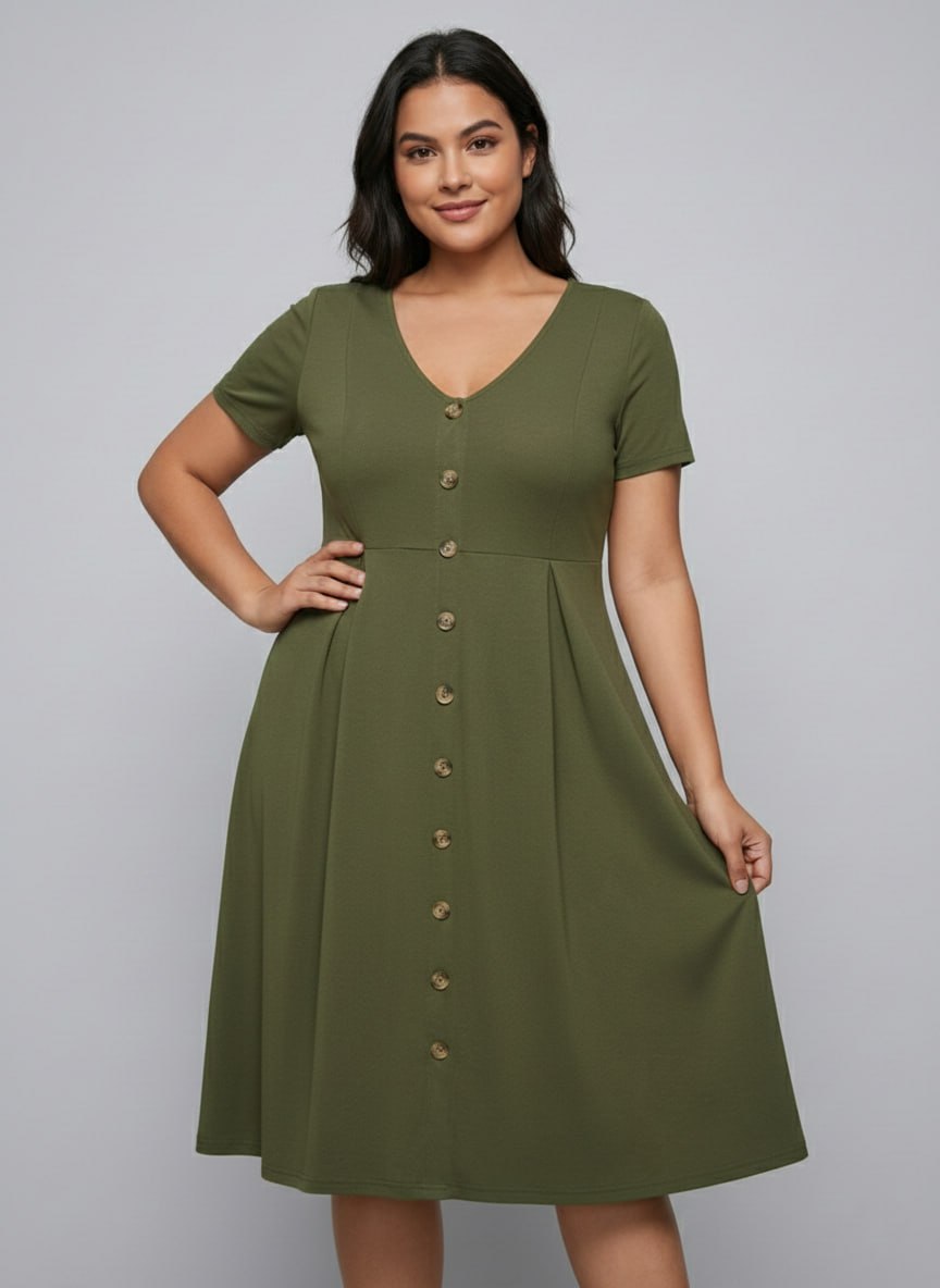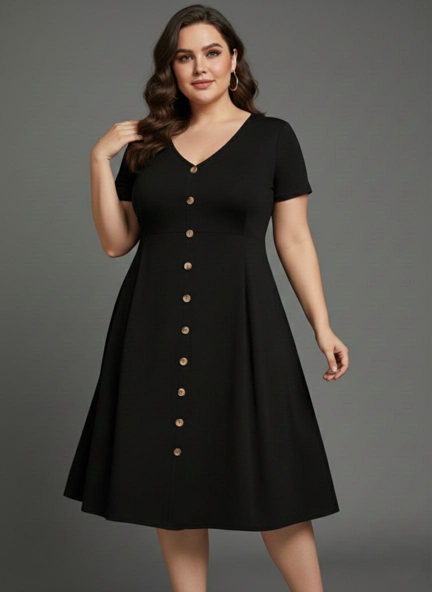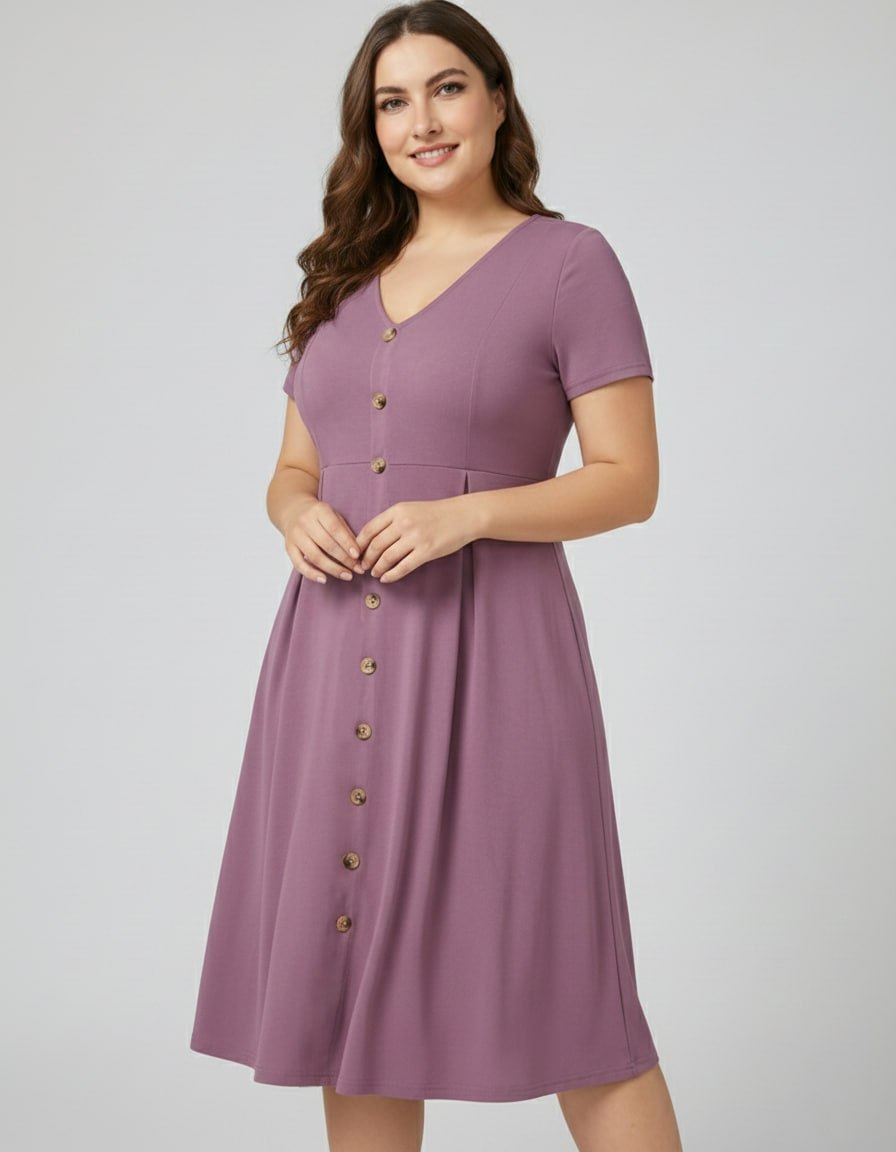 Elevate Your Style with Our Curvy Front A-Line Dress for Women – Made from Premium Synthetic Fabric