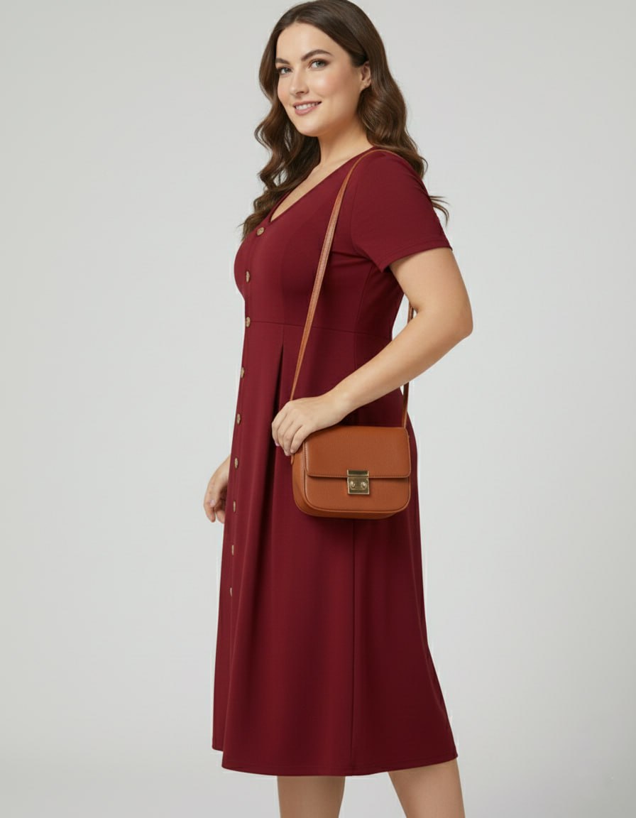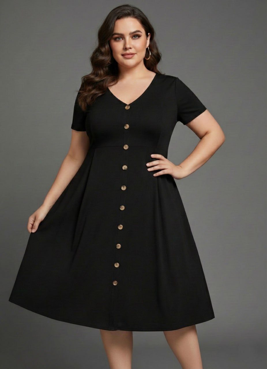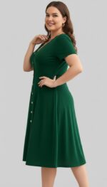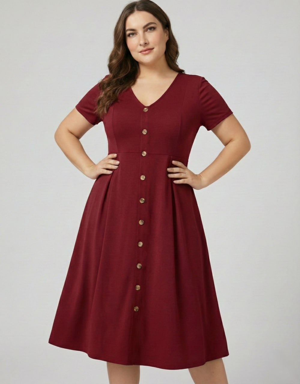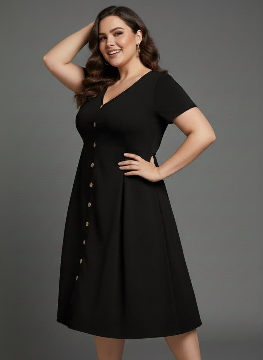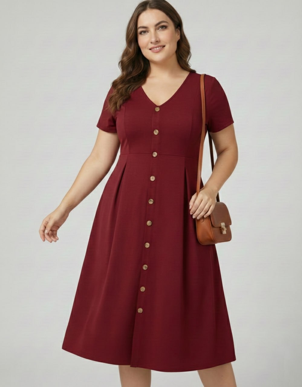 Turn heads with this elegant curvy front A-line dress, designed to flatter every figure with its timeless silhouette and graceful flow. Crafted from high-quality synthetic fabric, this dress offers a luxurious feel, excellent durability, and wrinkle resistance – perfect for all-day comfort and style.