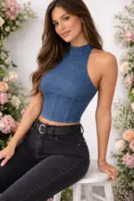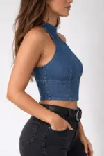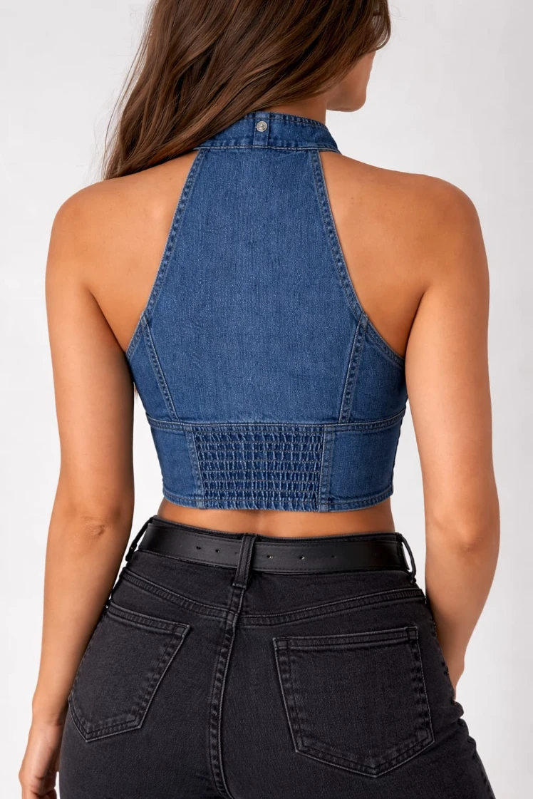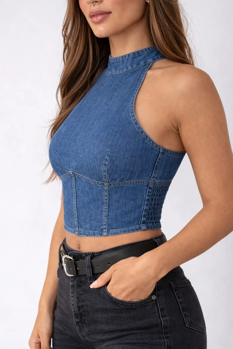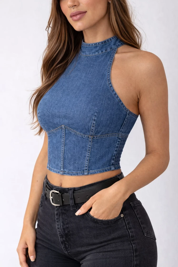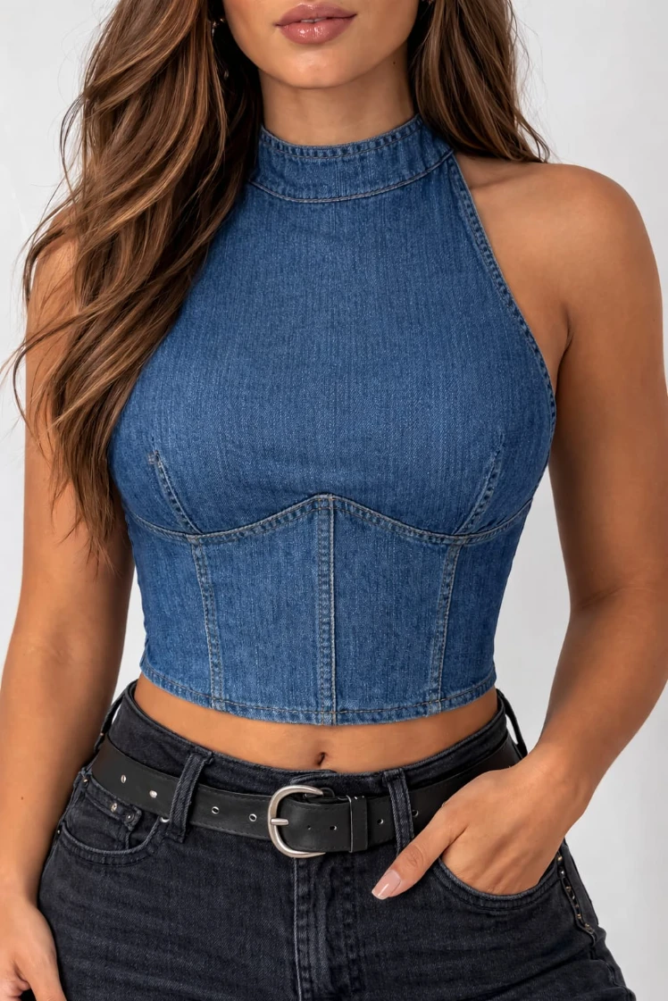 Be the first to review “Denim Halter Neck Corset Style Top”