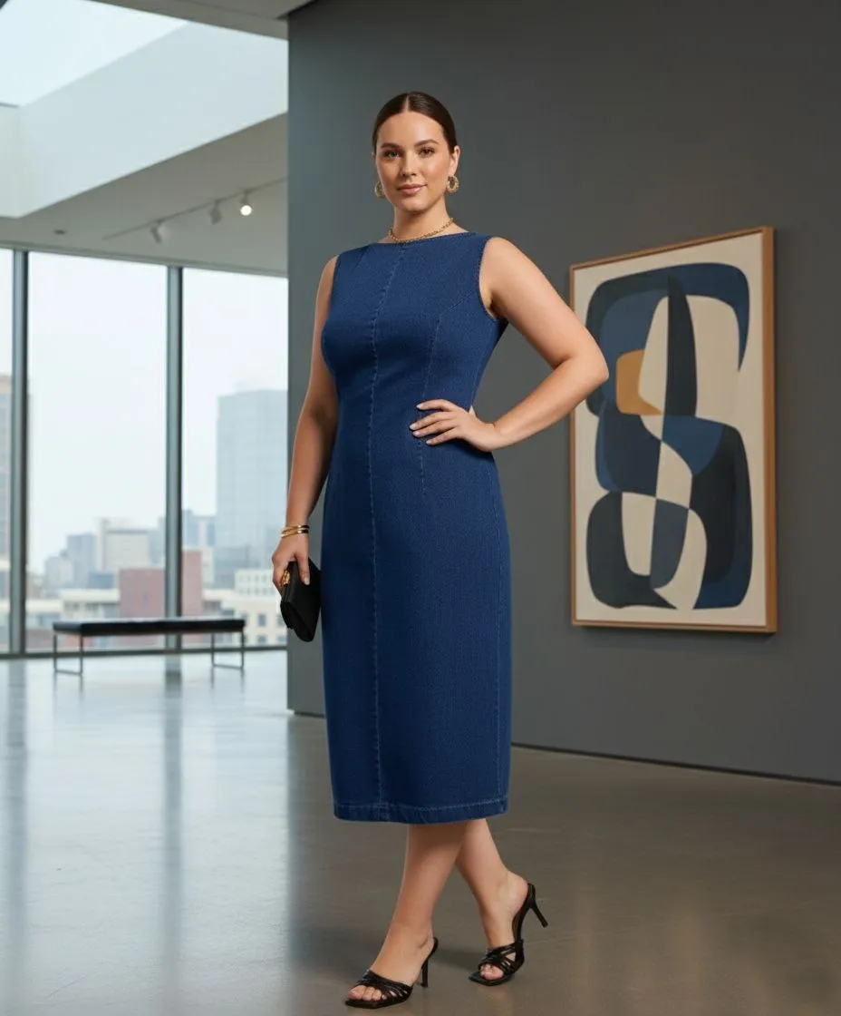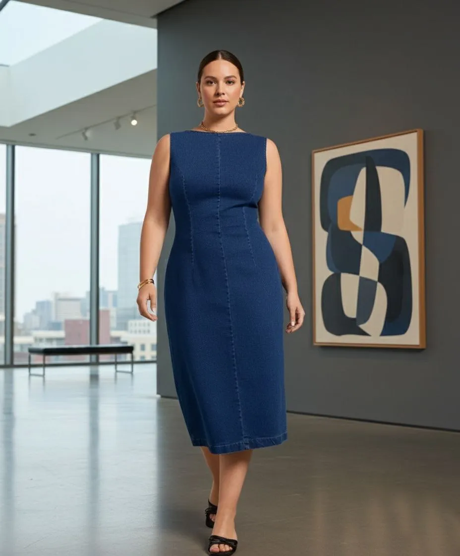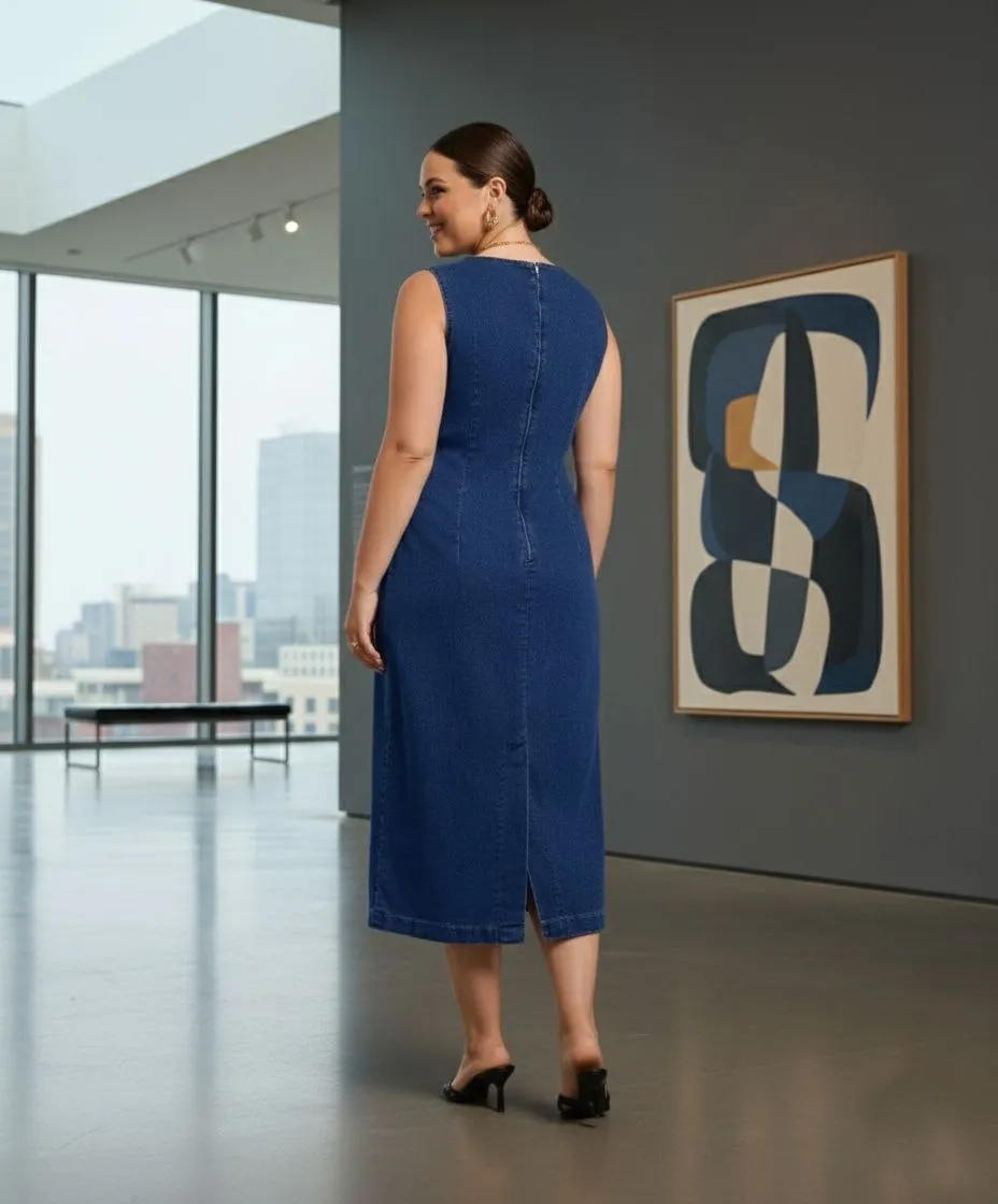 Lovshy Classic Blue Sleeveless Denim Dress