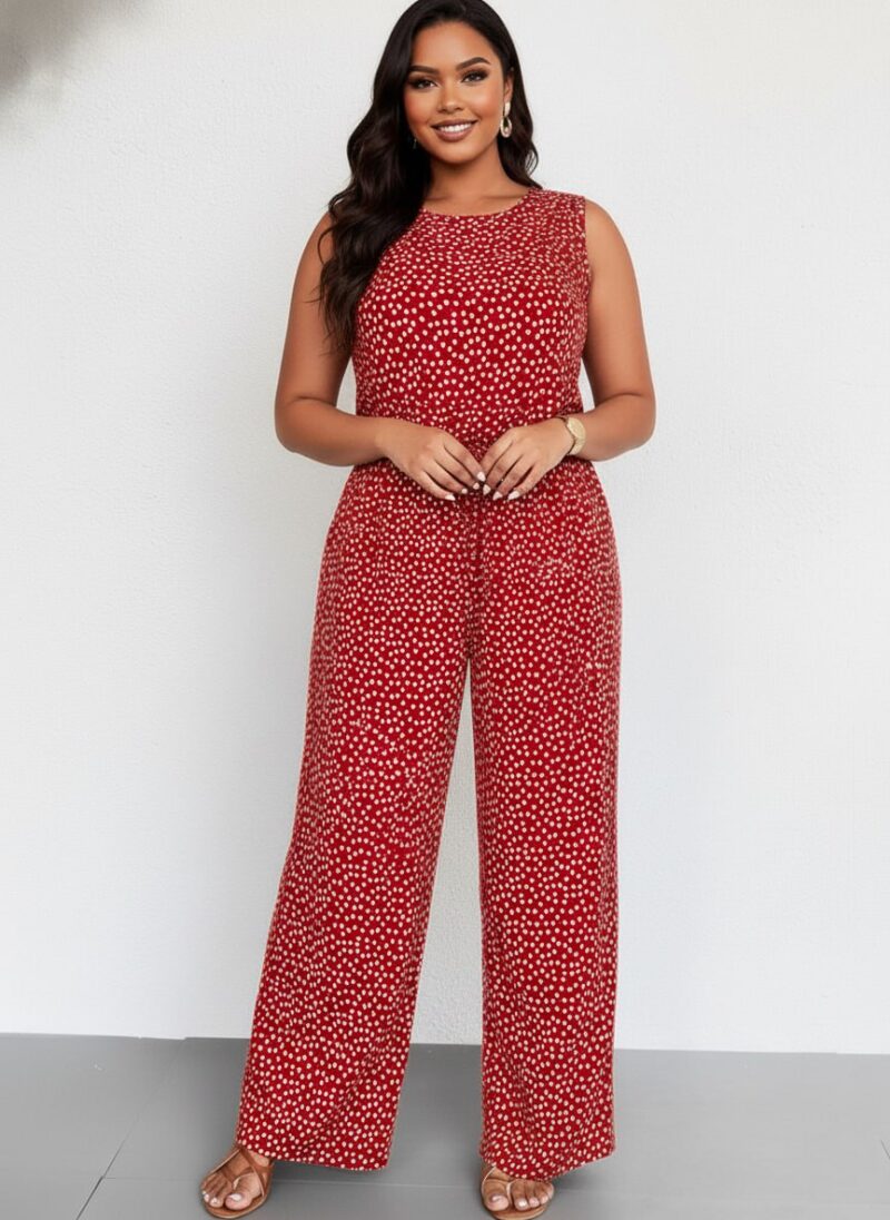 Package Includes: 1 Sleeveless Printed Jumpsuit