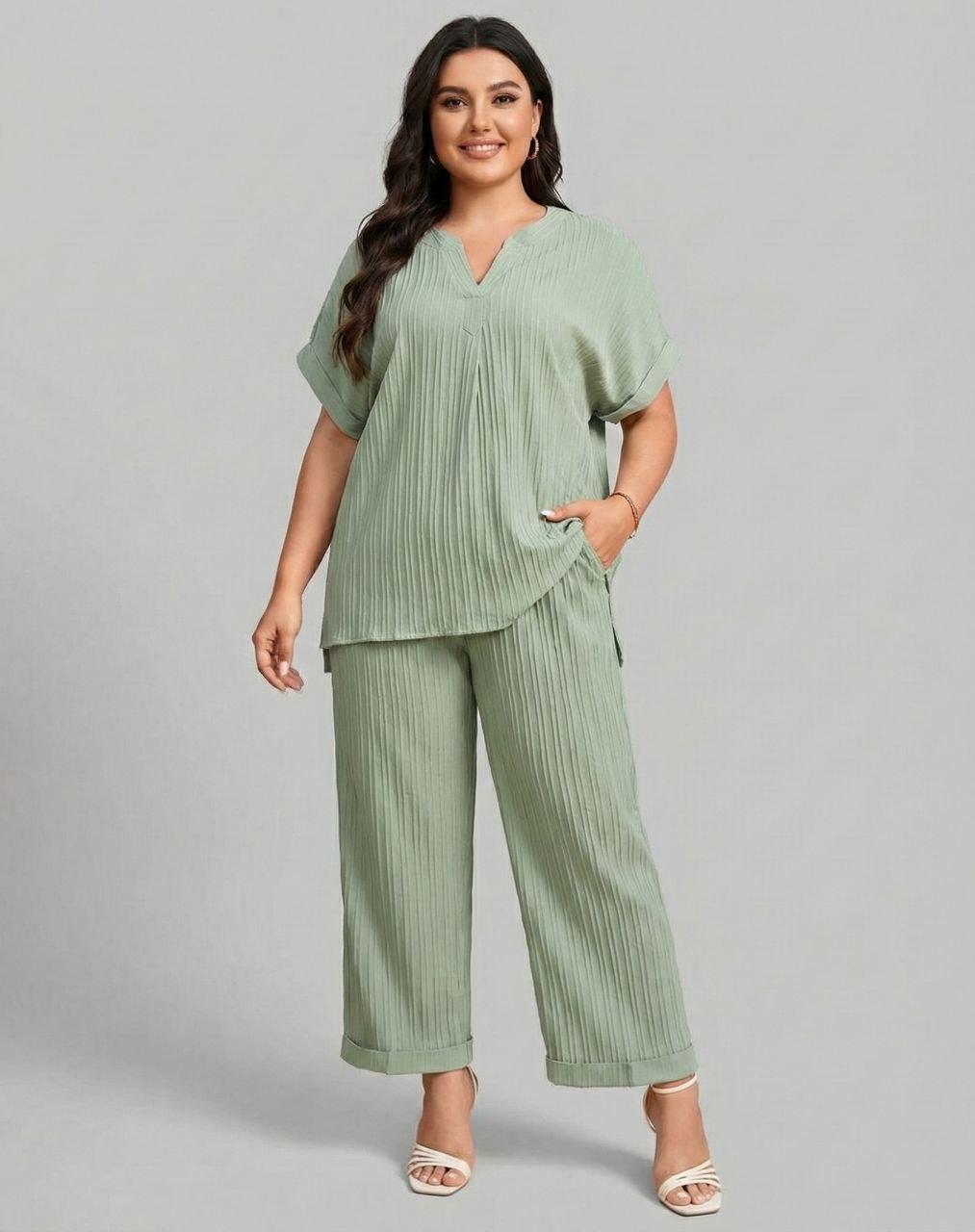 Effortless style meets timeless sophistication with our Notched Blouse & Pants Set. Perfect for both casual and formal occasions, this set combines comfort and elegance.